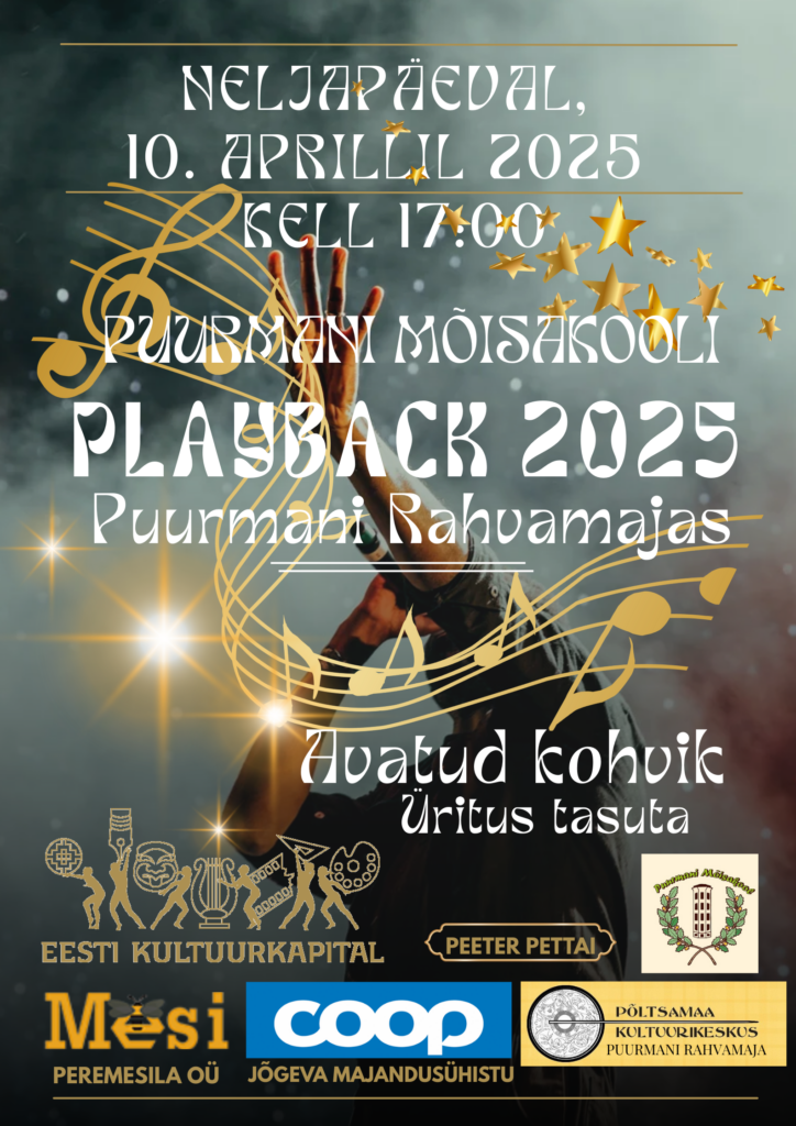 10. aprillil kell 17.00 Puurmani rahvamajas toimub Puurmani Mõisakooli Playback Show.