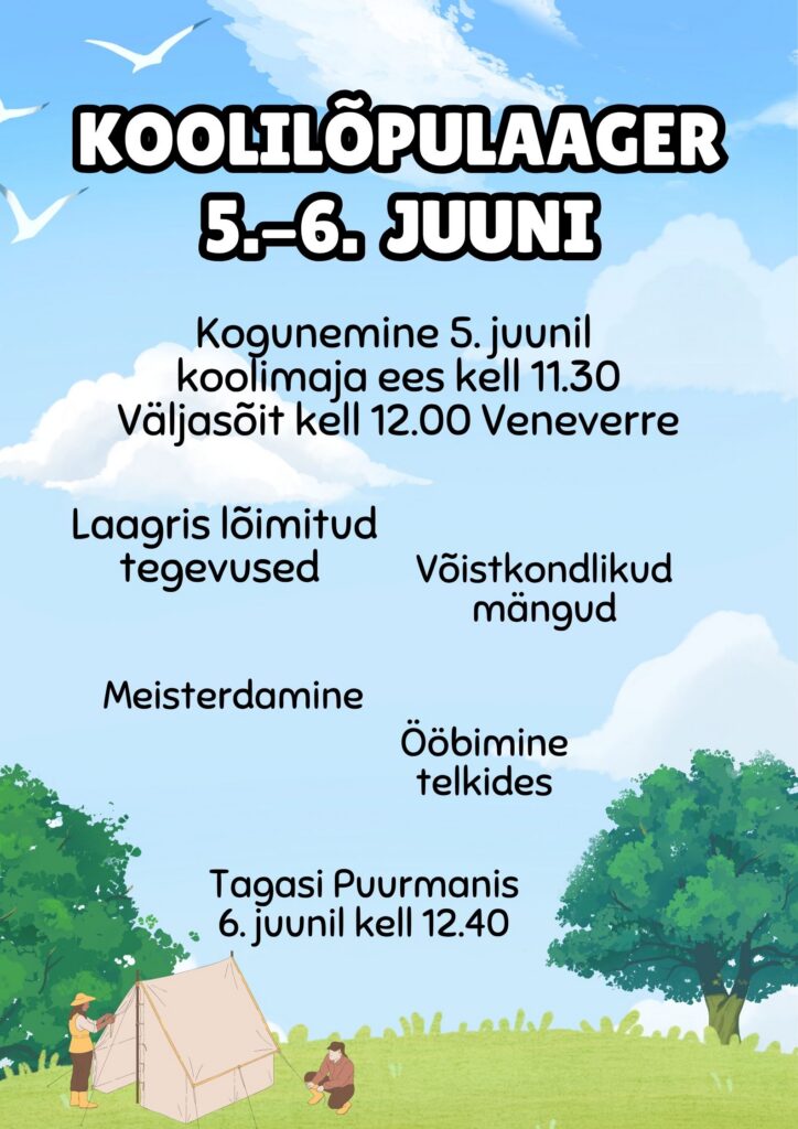 5.-6. juunil toimub Venevere Puhkekülas koolilaager.