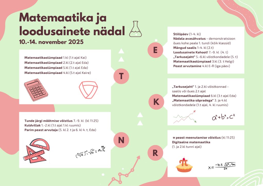 Meie koolis toimub reaalainetenädal, mille raames on stiilipäev, matemaatika olümpiaadid ja palju muudki veel.